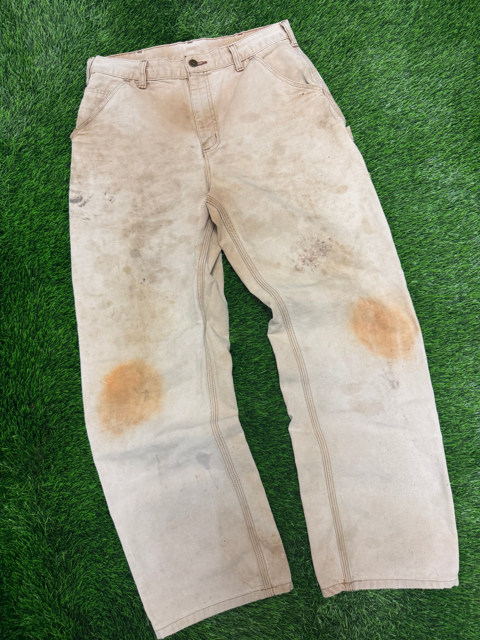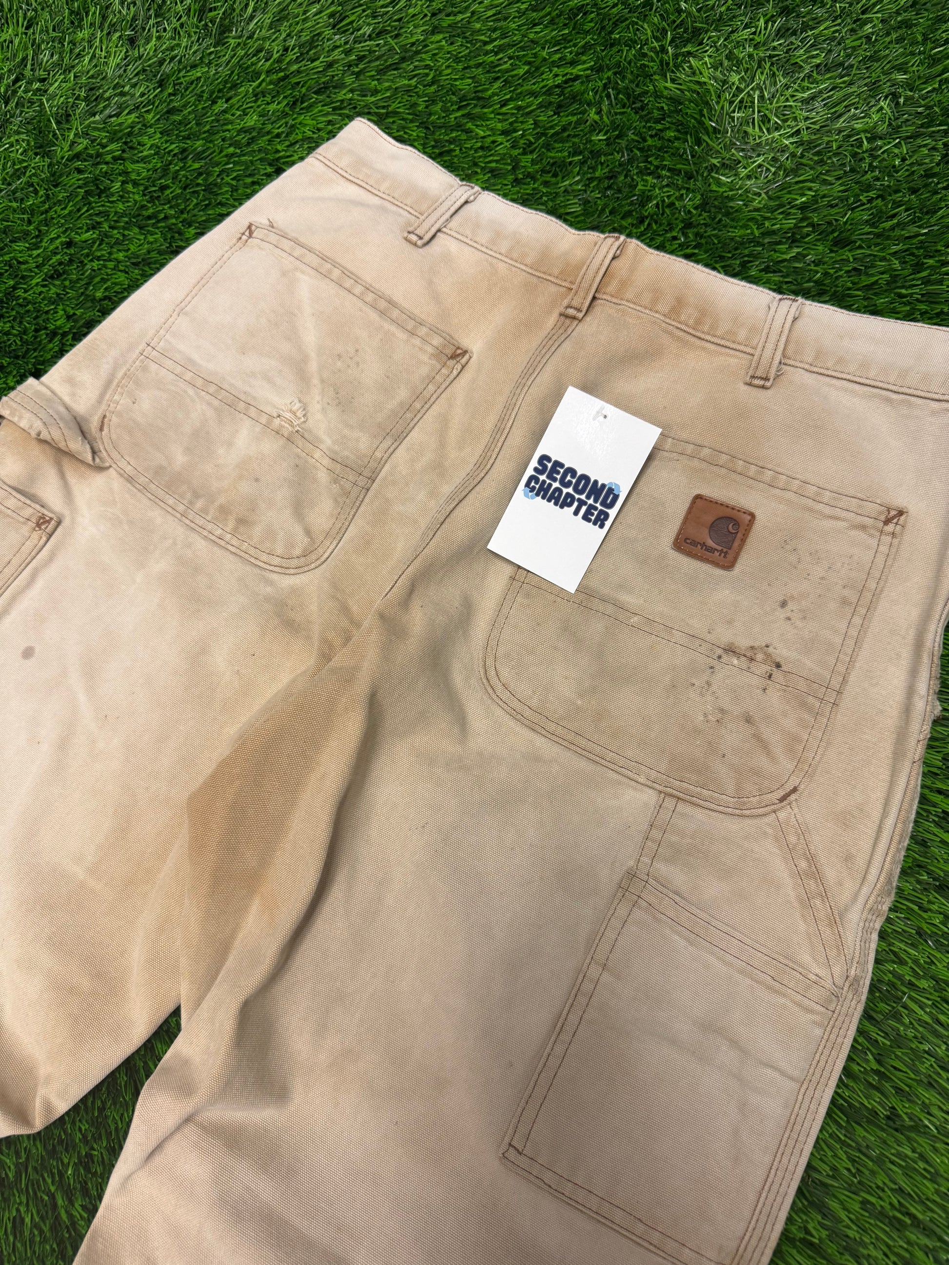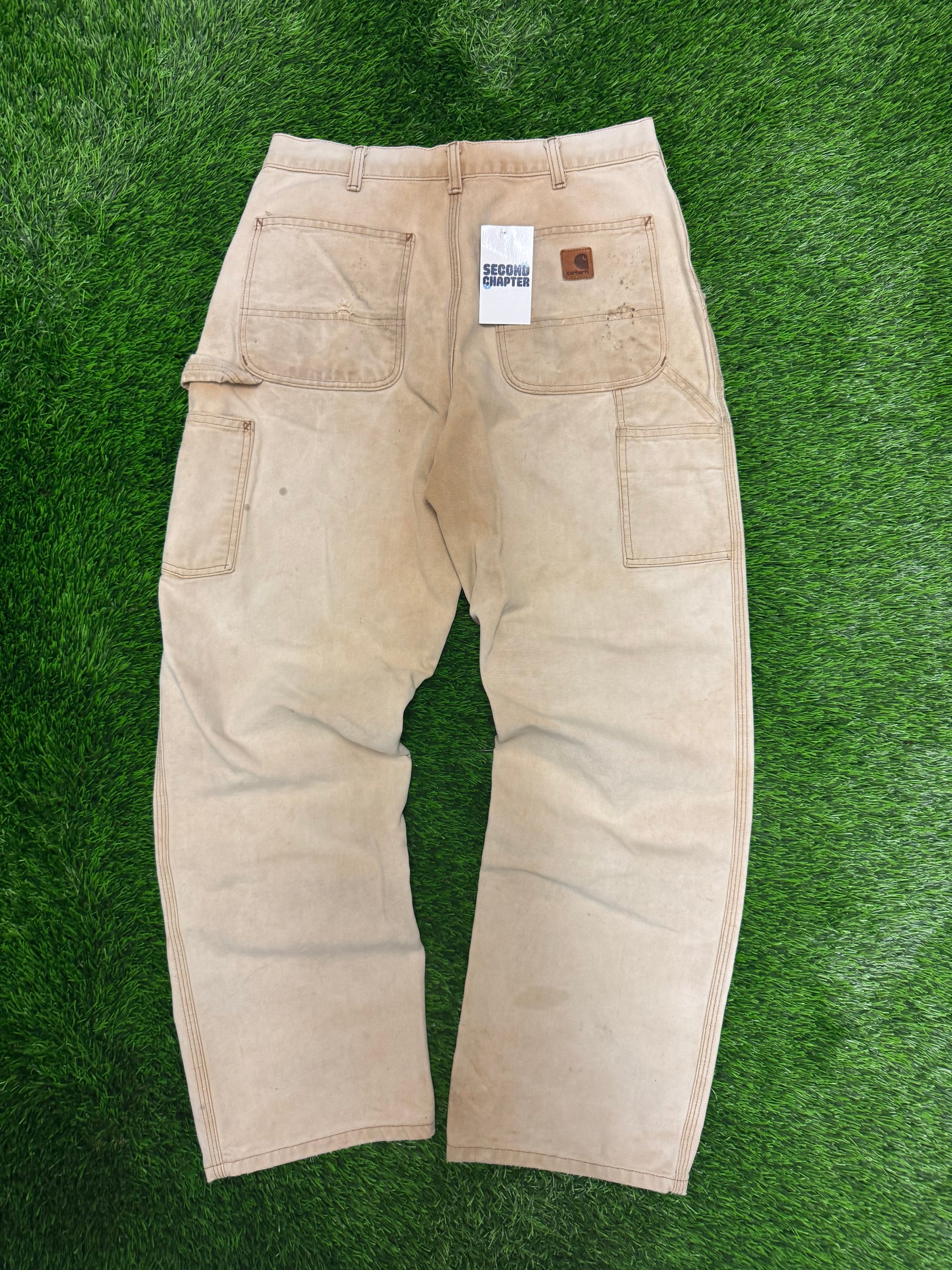 00s Vintage Carhartt Faded Tan Thrashed Pants (32 x 31)