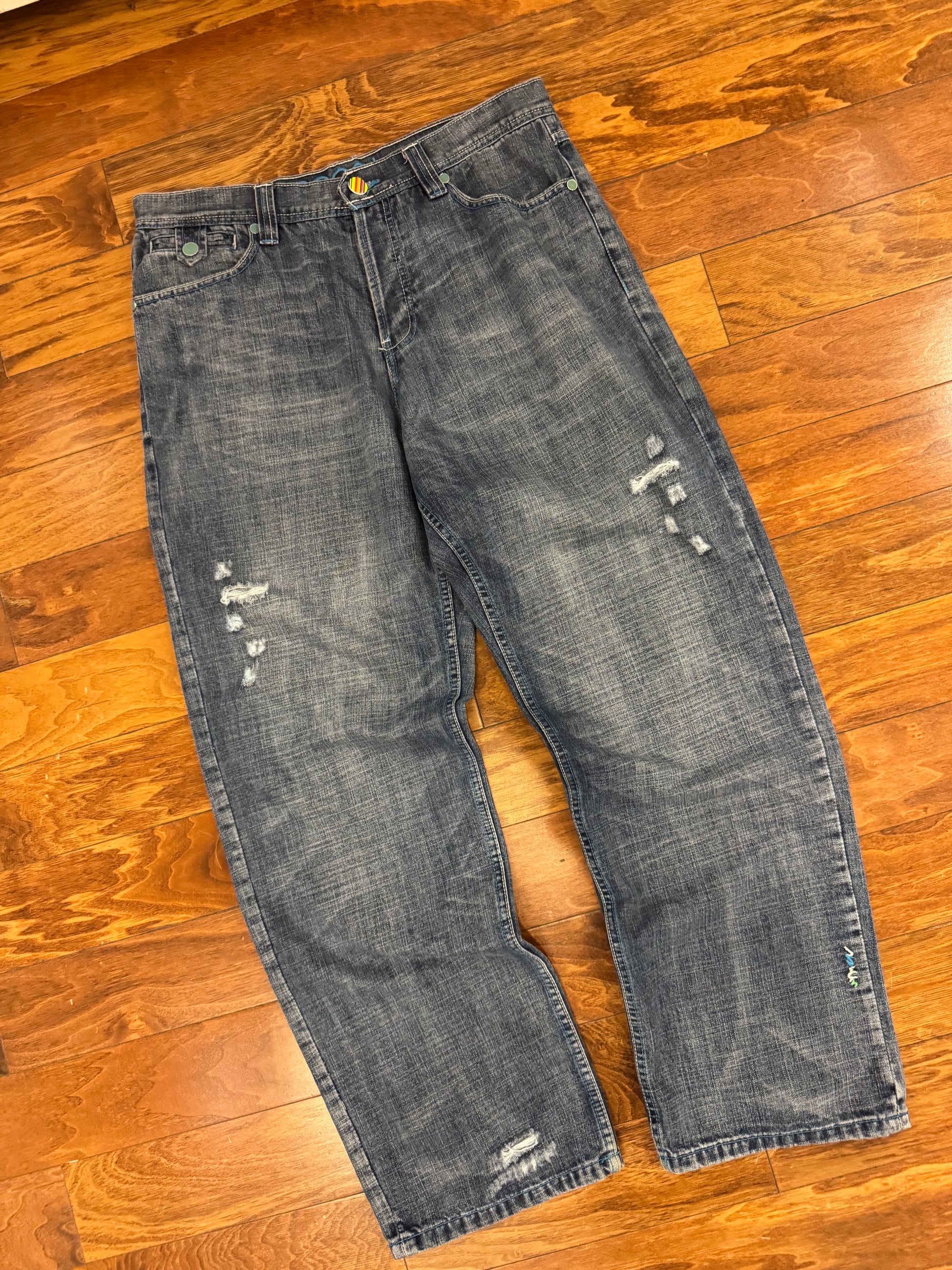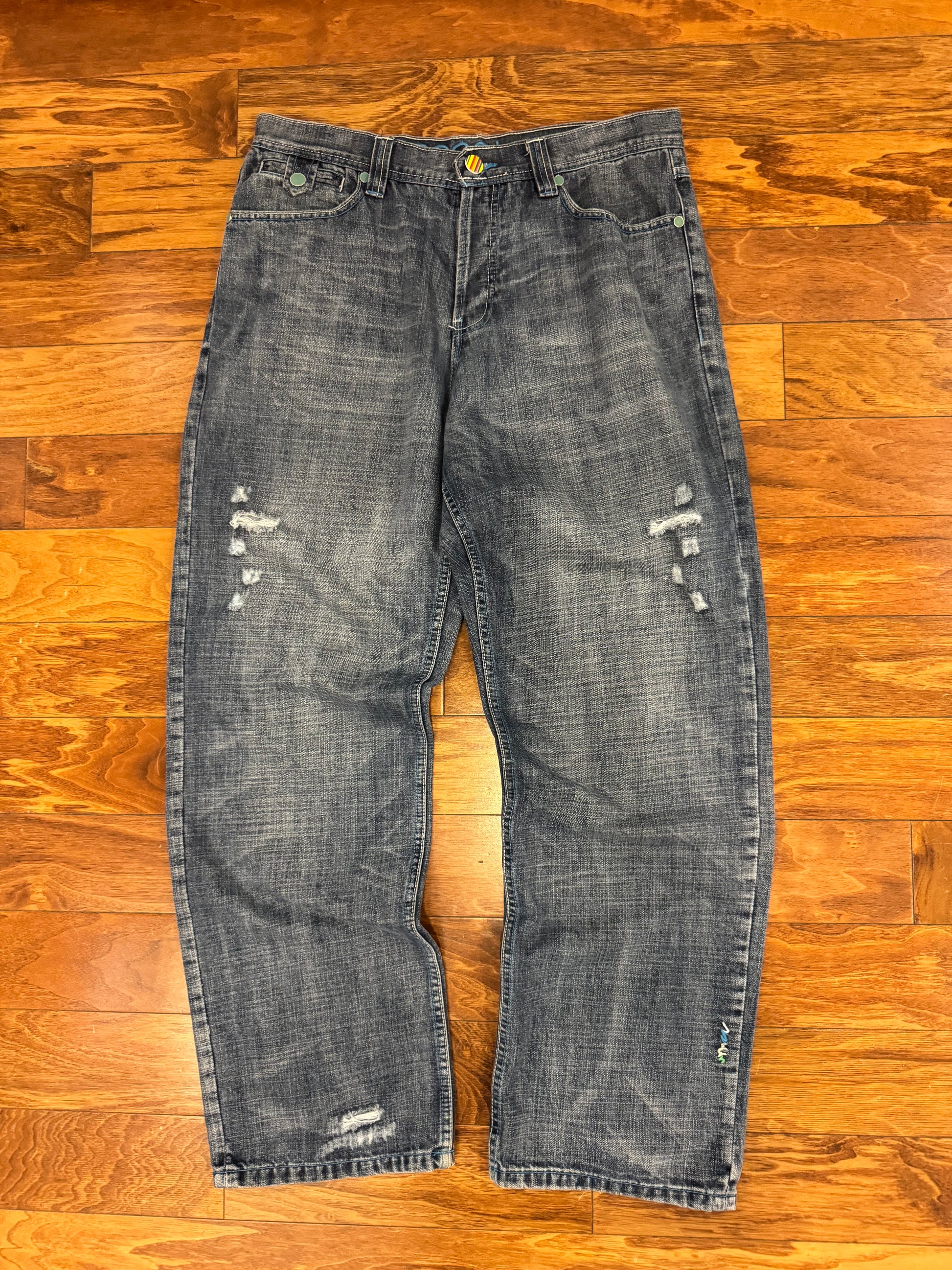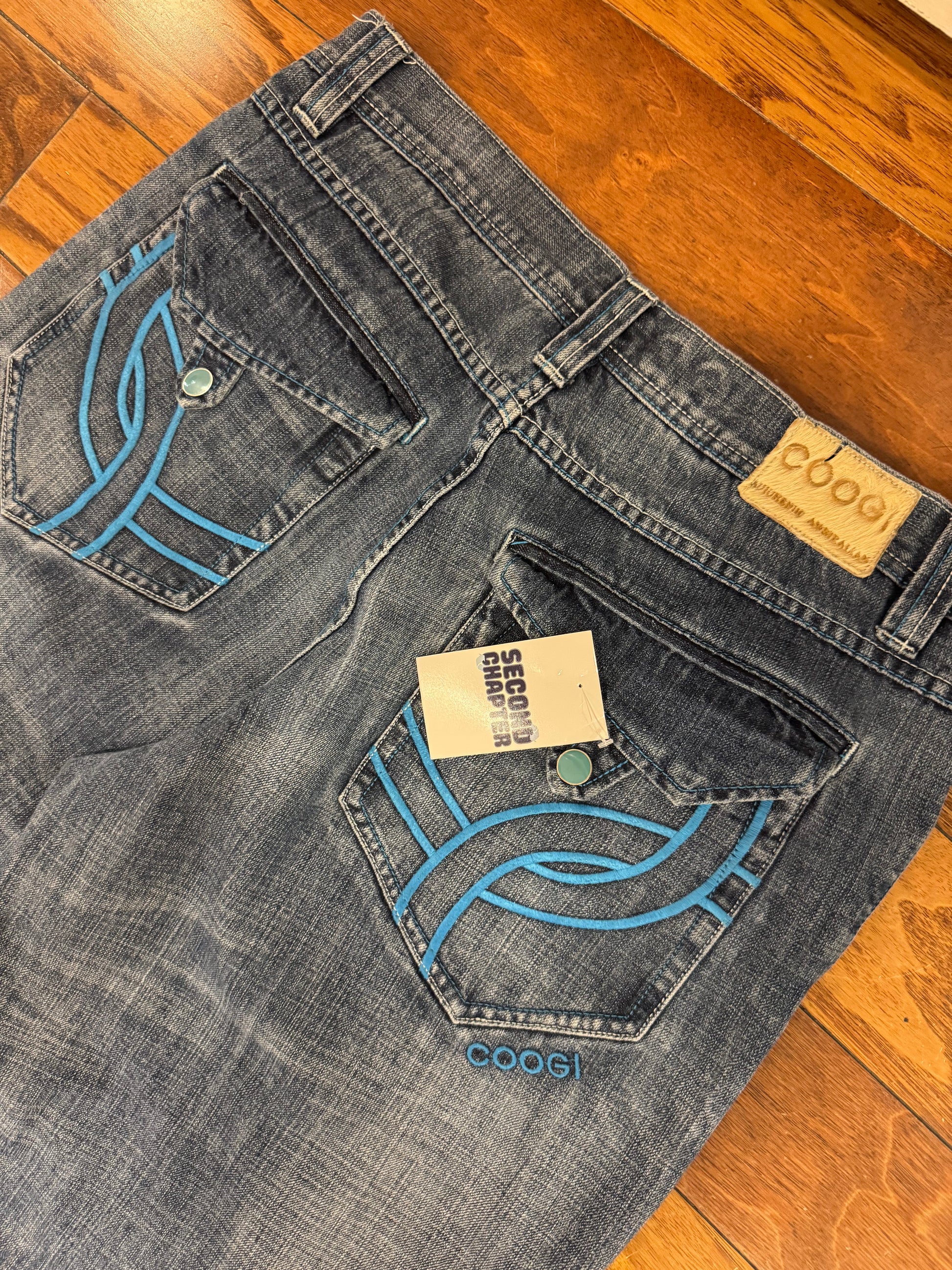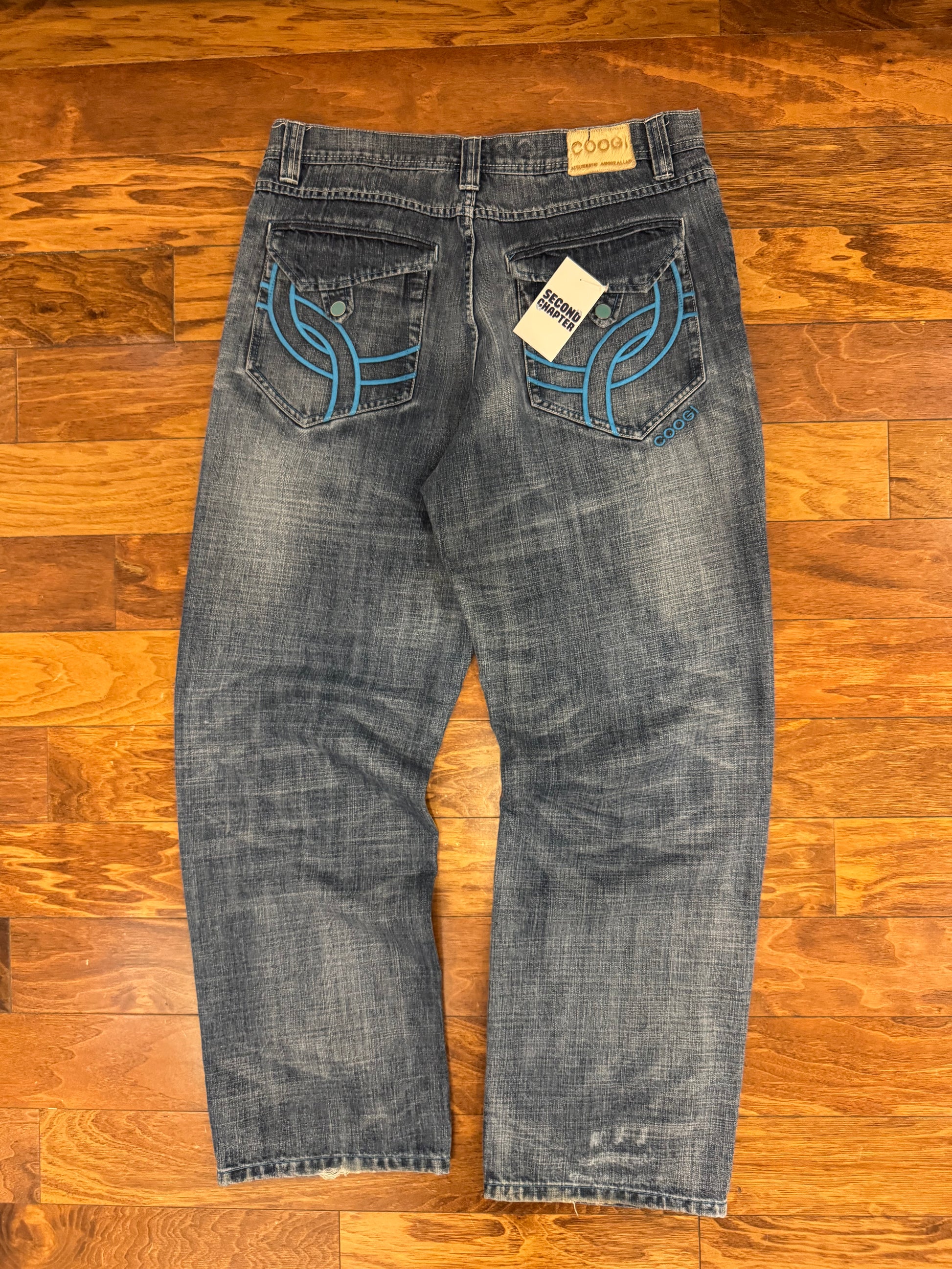 00s Coogi Distressed/Embroidered Blue Jeans (36 x 34)