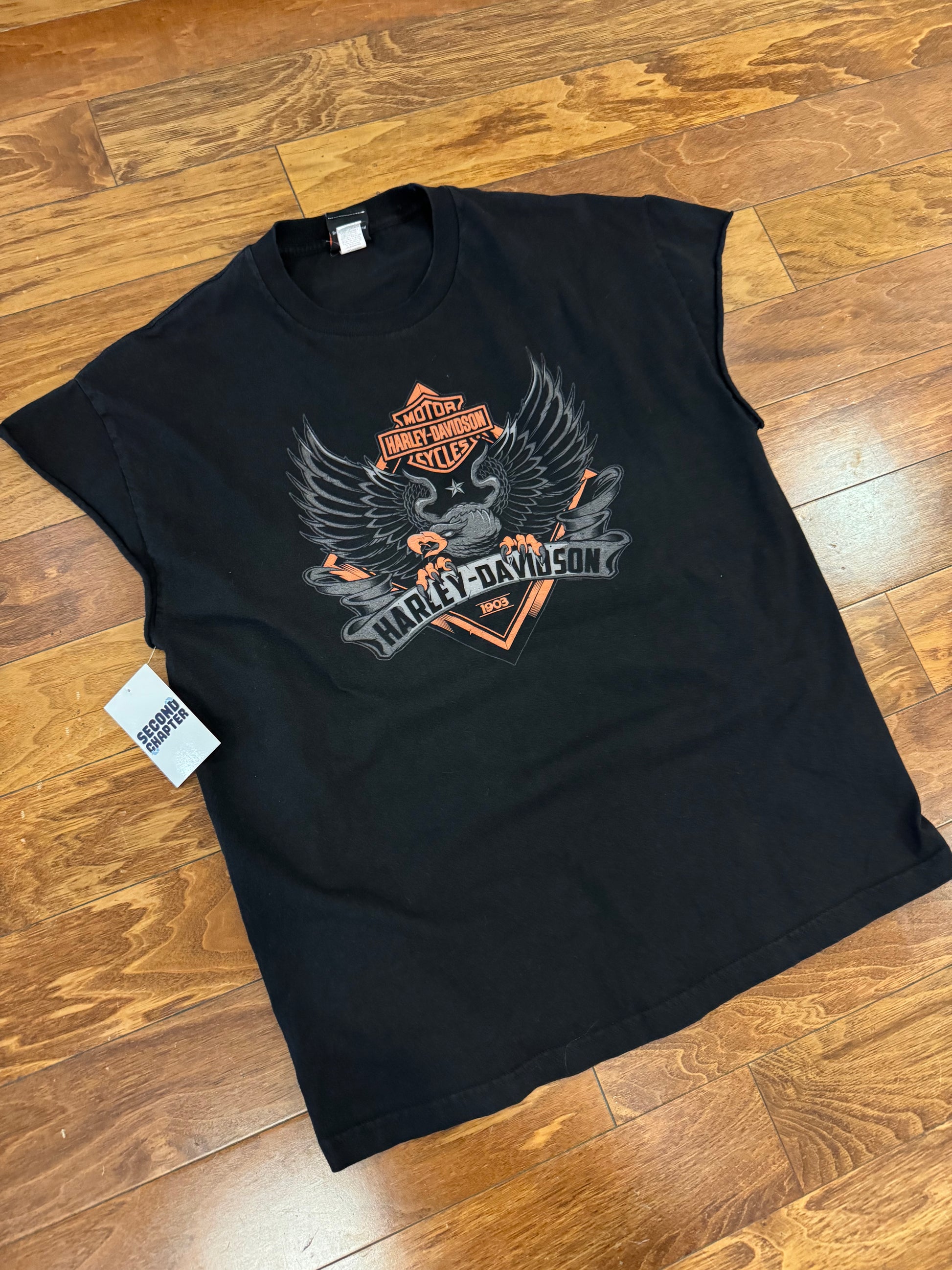 00s Harley Davidson Sedalia, Missouri Eagle Cut Off Tee (XL)