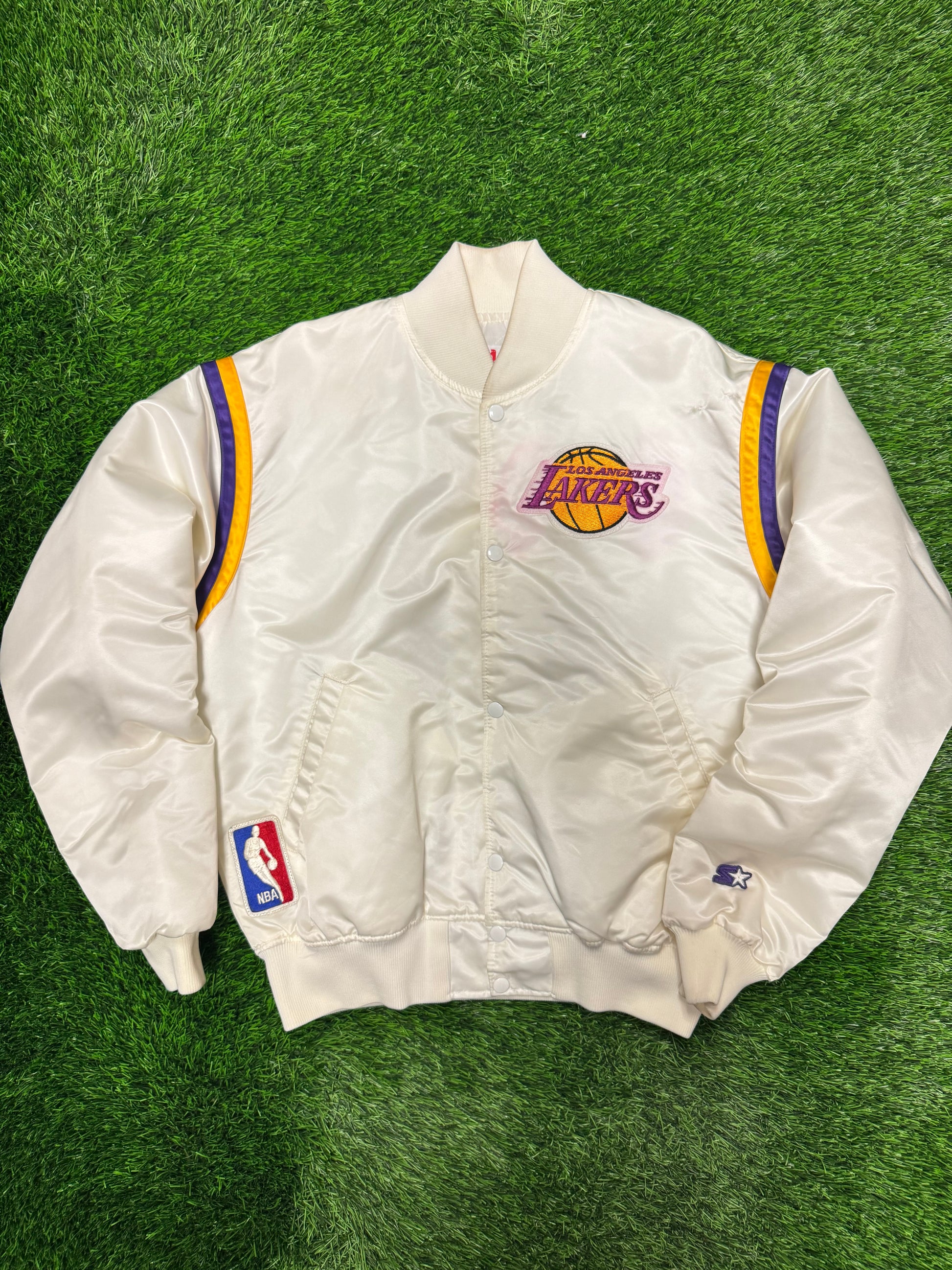 80s Los Angeles Lakers White Starter Satin Jacket (L)