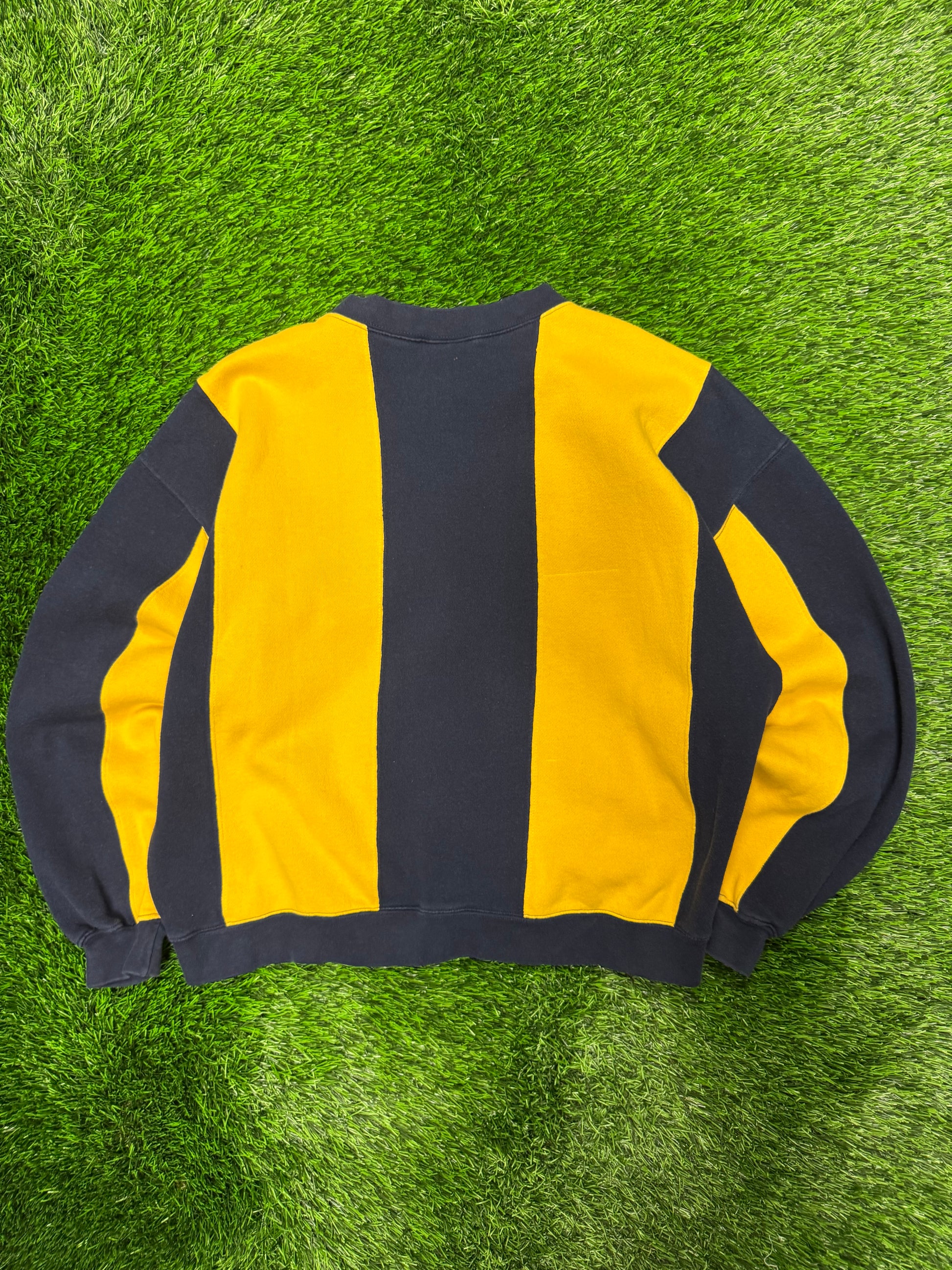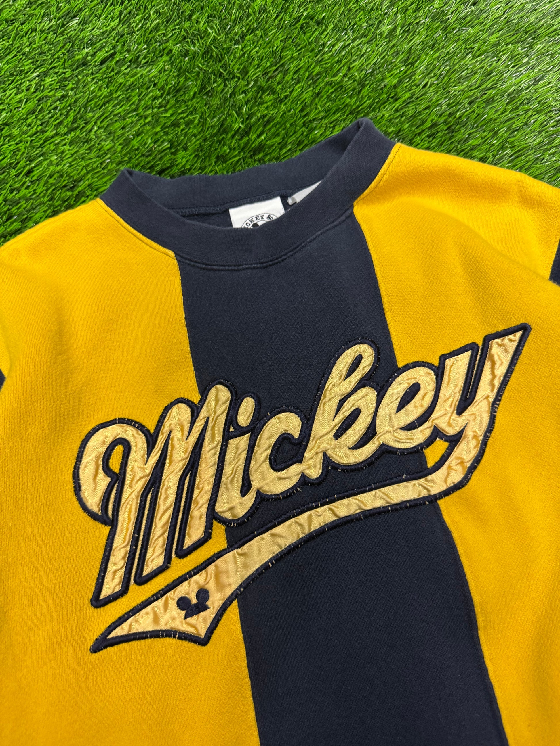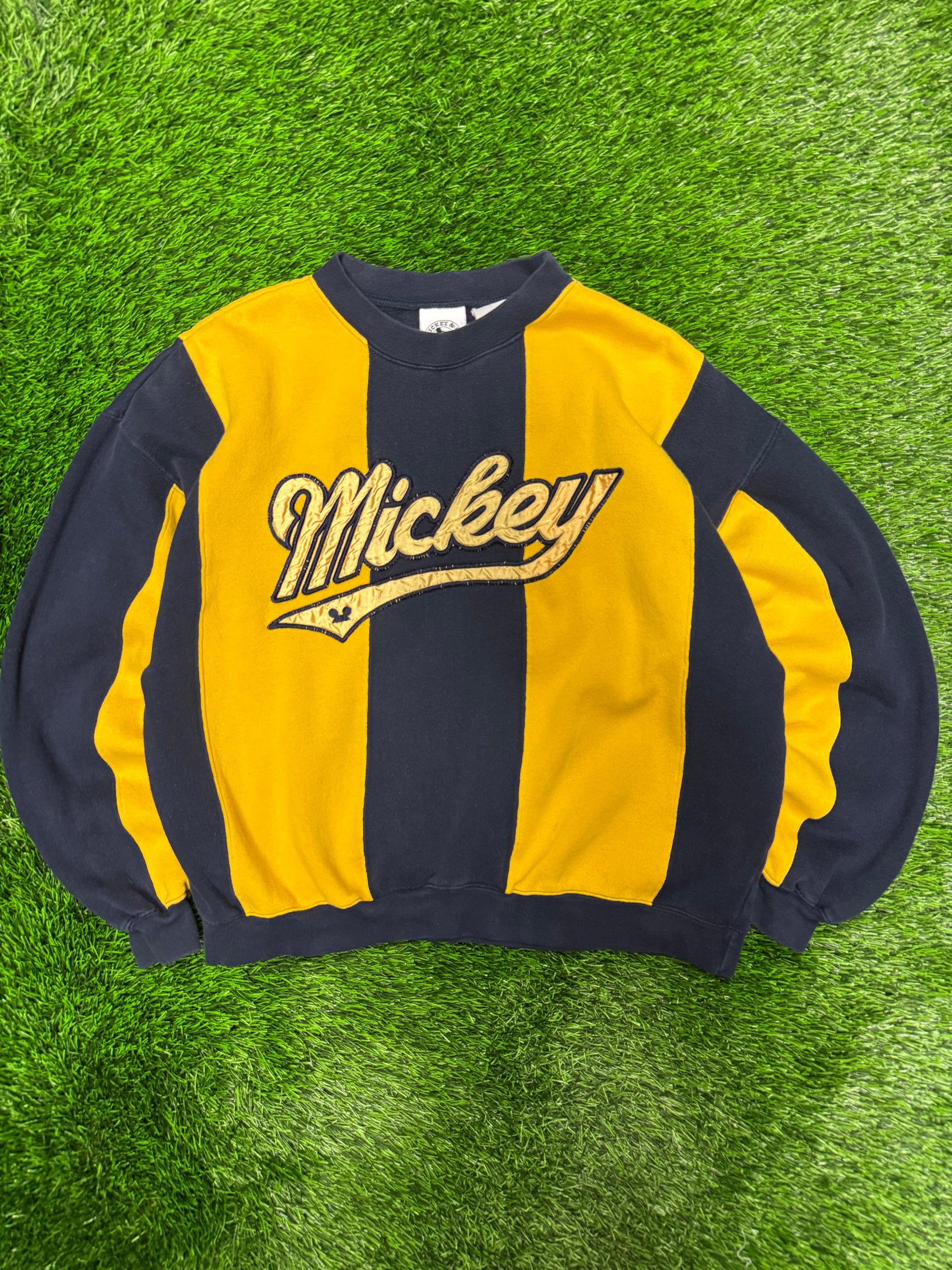 90s Mickey Embroidered Spell Out Striped Vintage Crewneck (M)