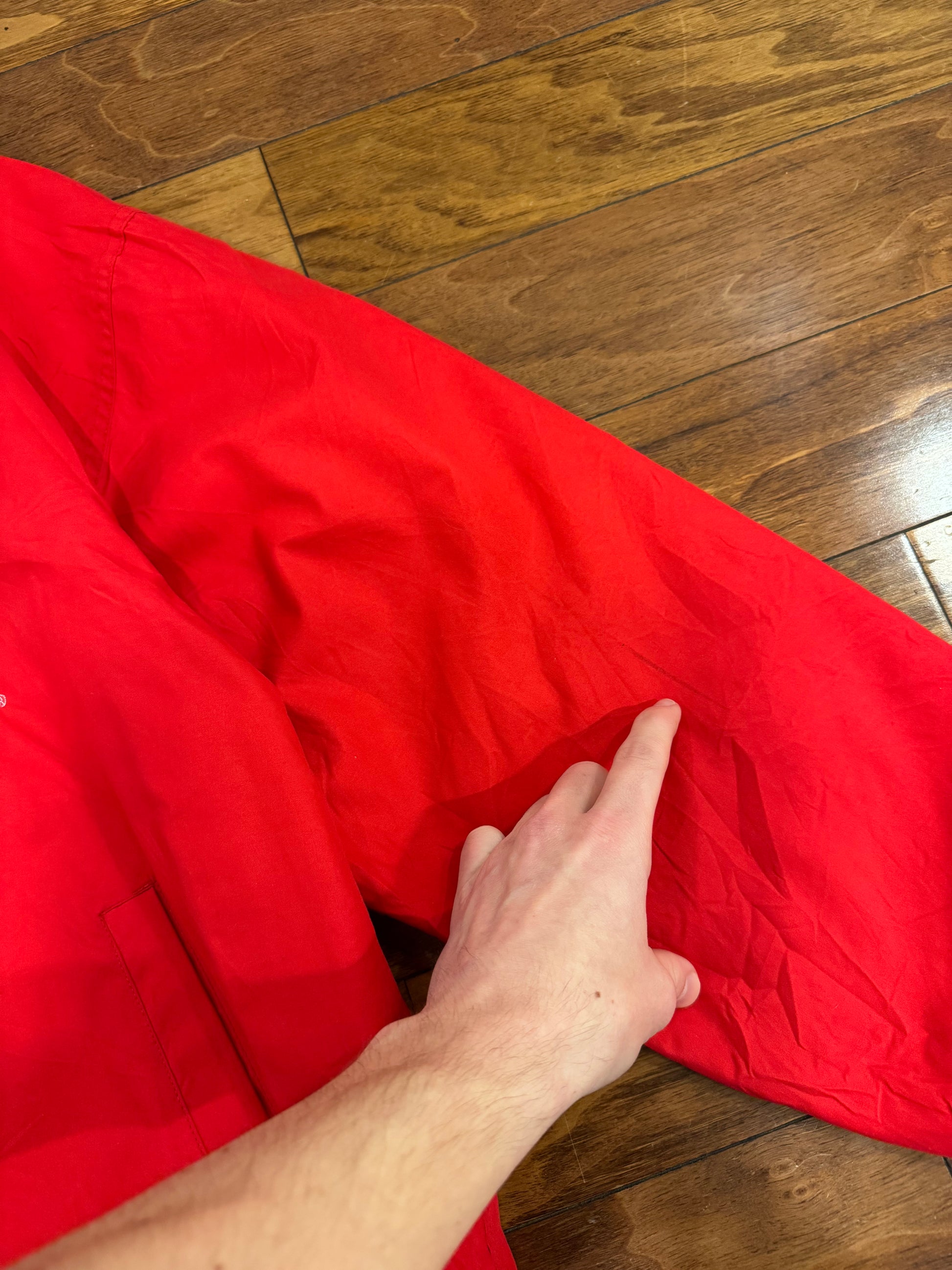 This is a vintage/secondhand item and may show signs of wear, fading, or defects due to age. Item has red bleeding on white areas.