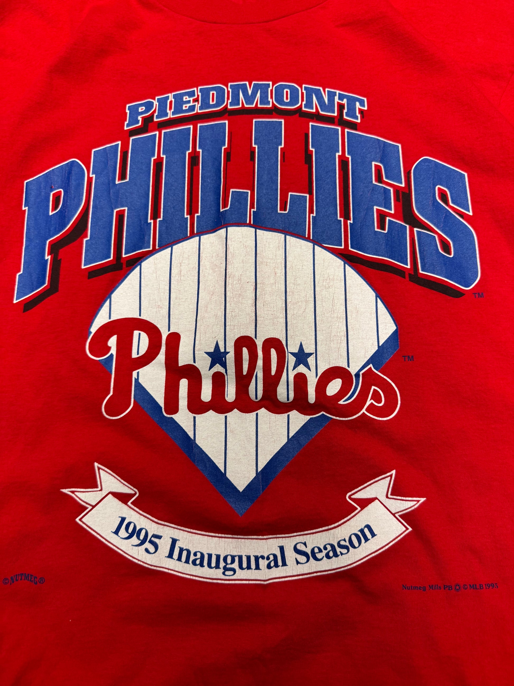 1995 Piedmont Phillies Inaugural Season Vintage Nutmeg MLB Tee (L)