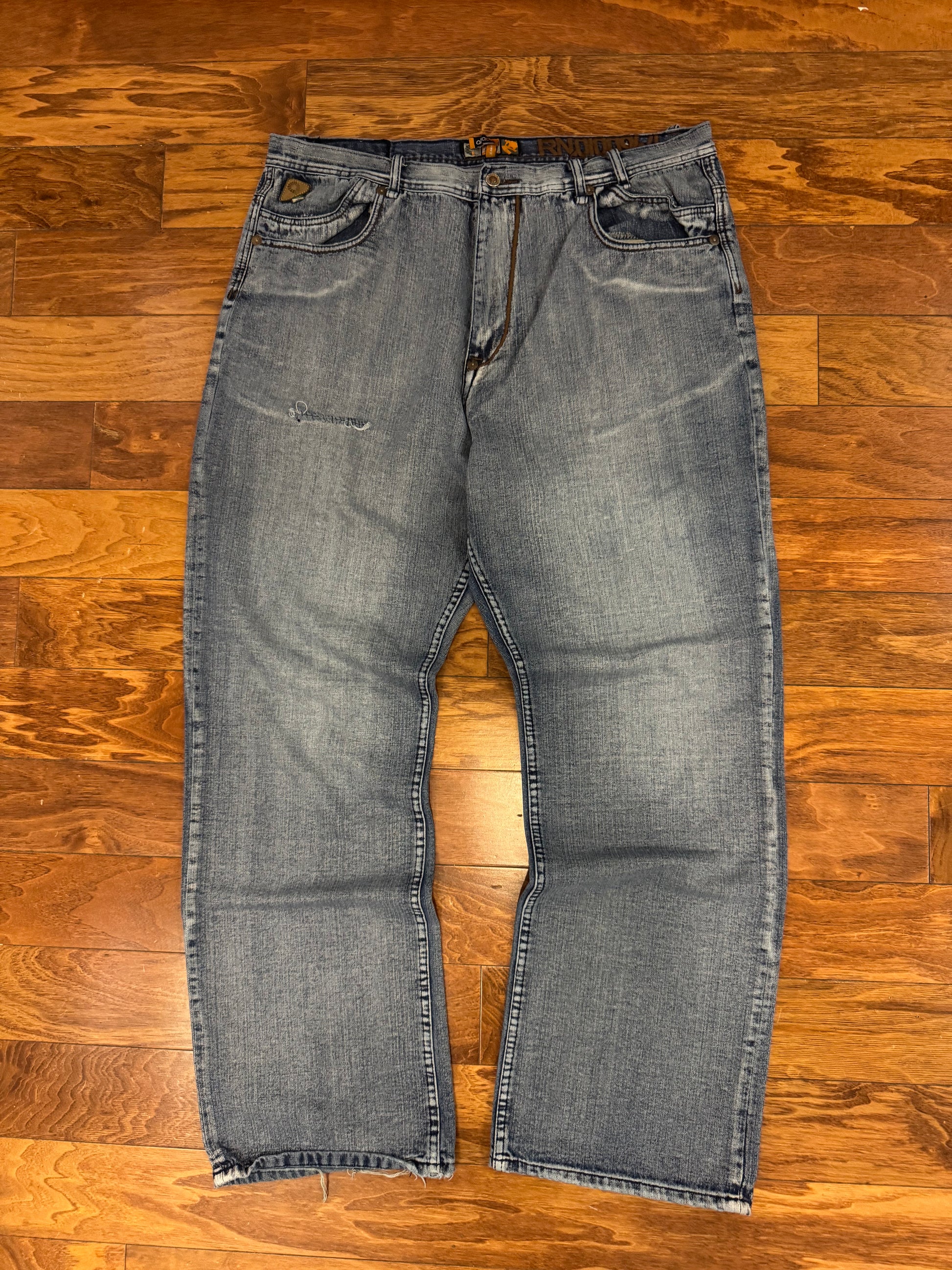 00s Akademiks Baggy Embroidered Blue Jeans (40 x 34)