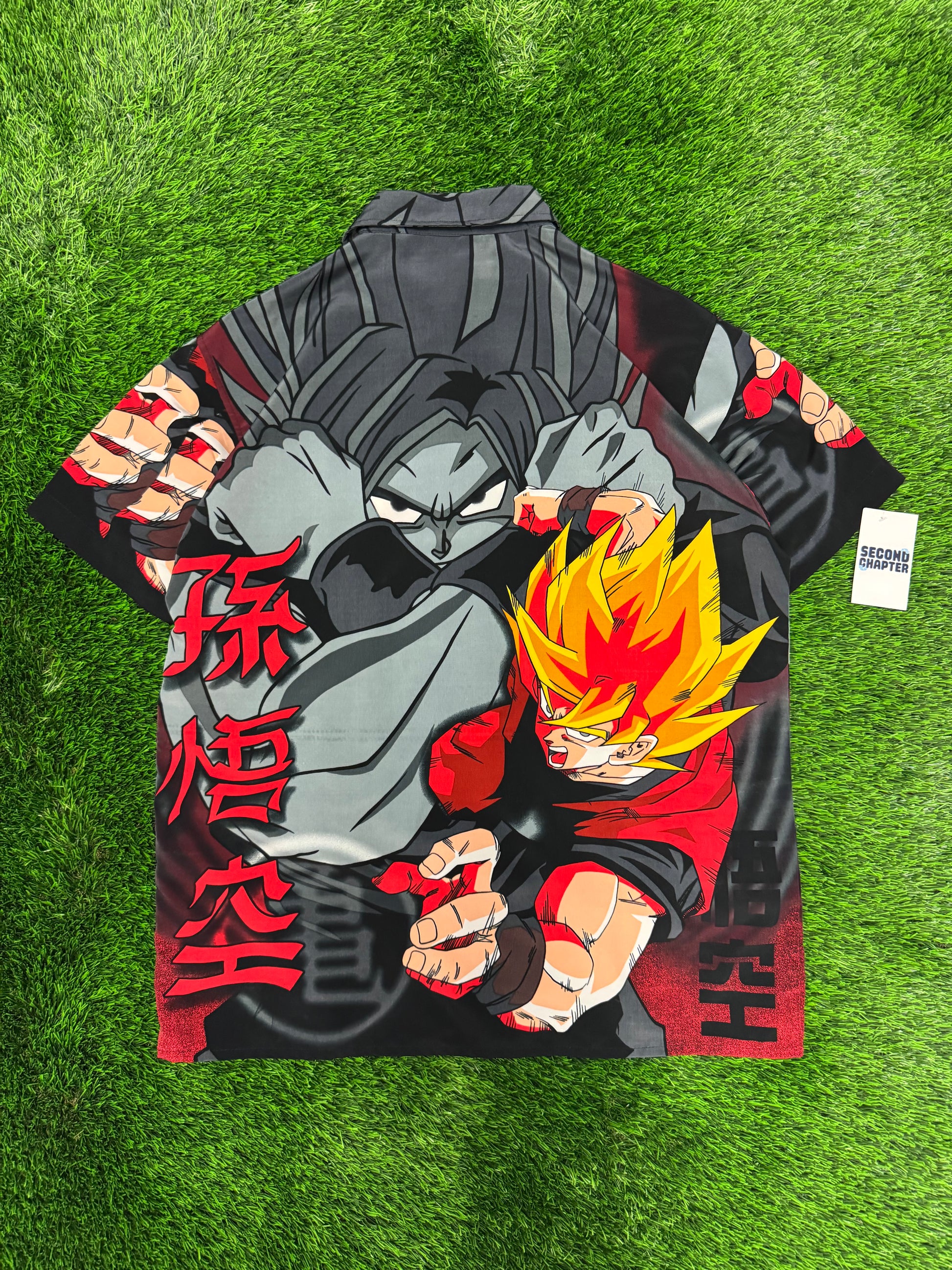 2001 Dragon Ball Z All Over Print Super Saiyan Button Up Oversized Shirt (S)