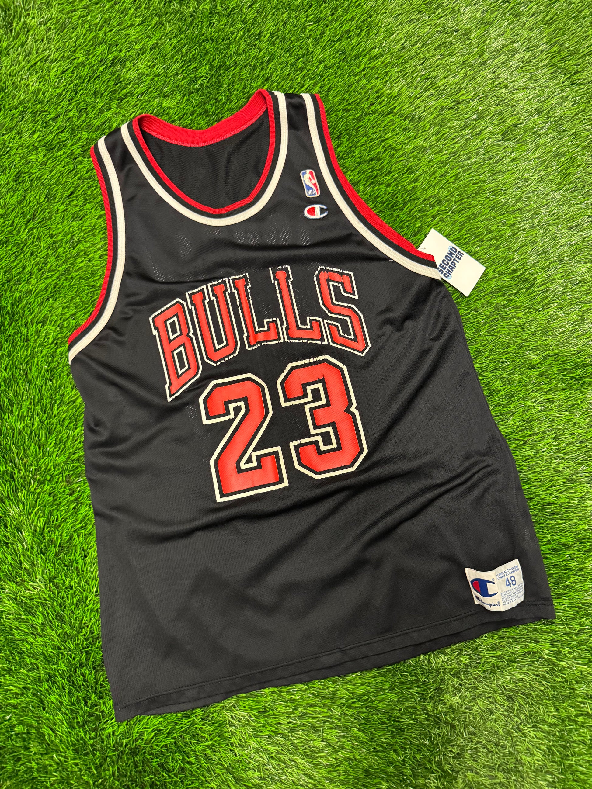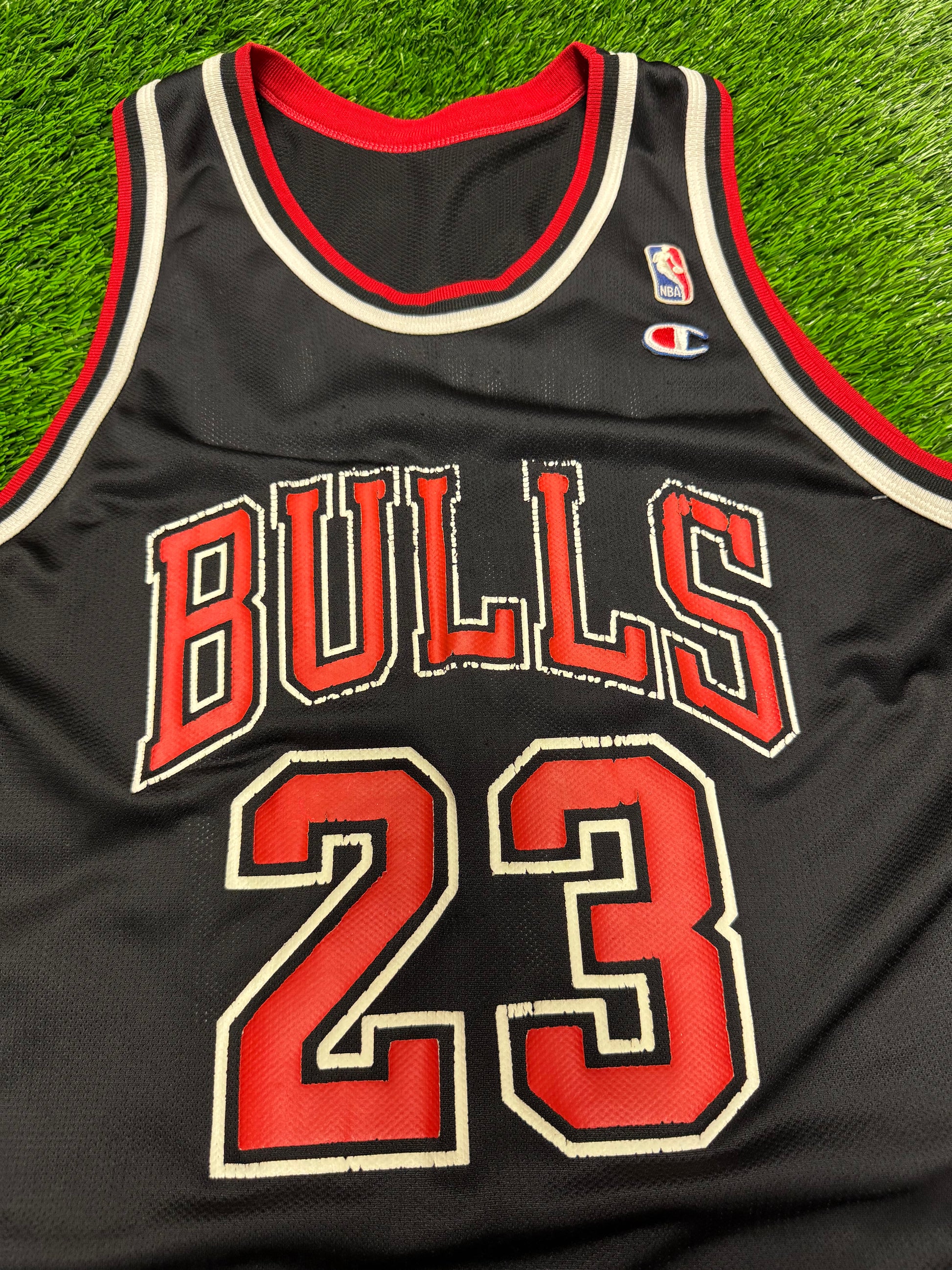 90s Chicago Bulls Michael Jordan 23 Vintage Champion NBA Black Jersey (L)