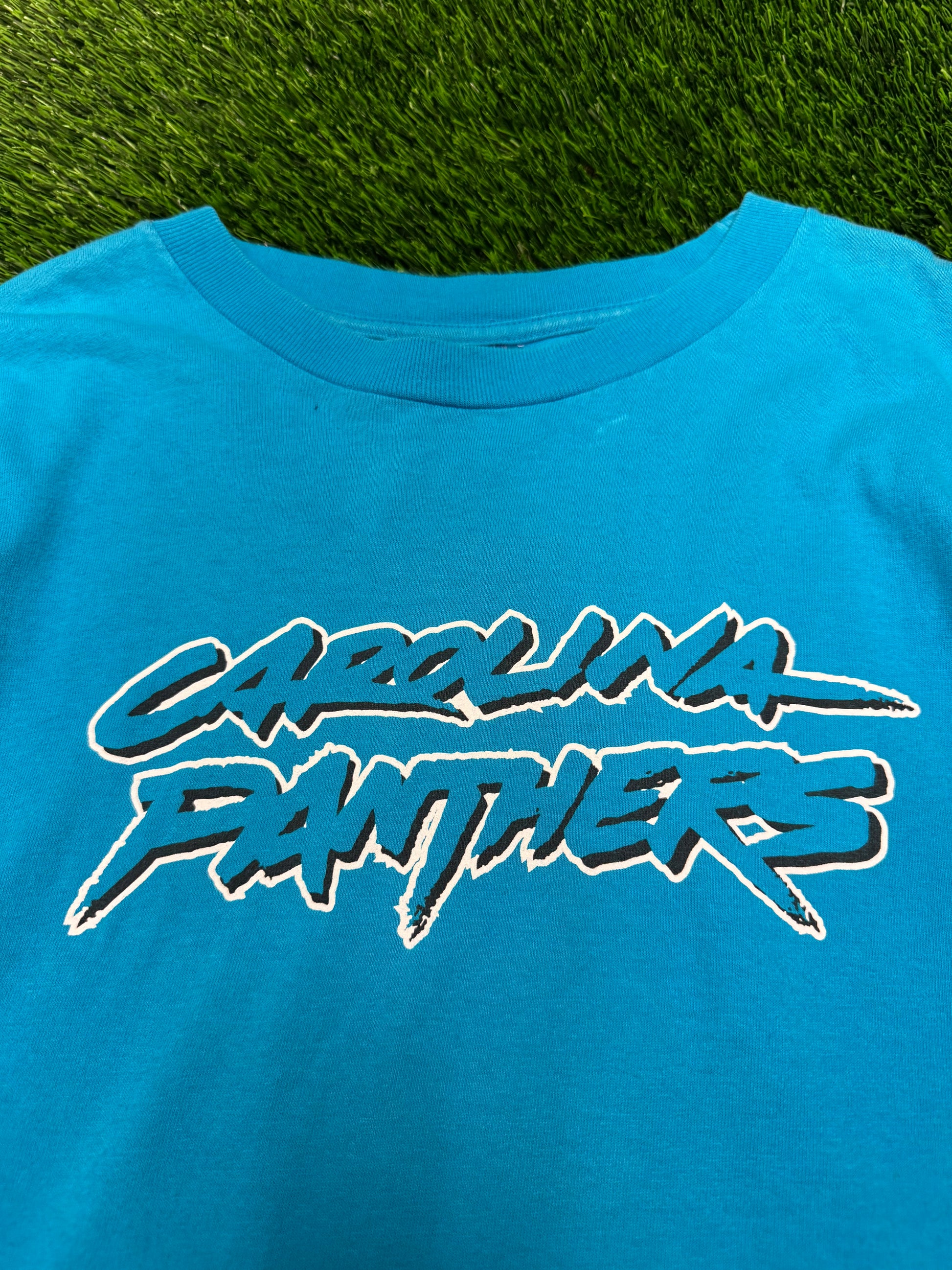 00s Carolina Panthers Blue Spell Out Cat Scratch Tee (XL)