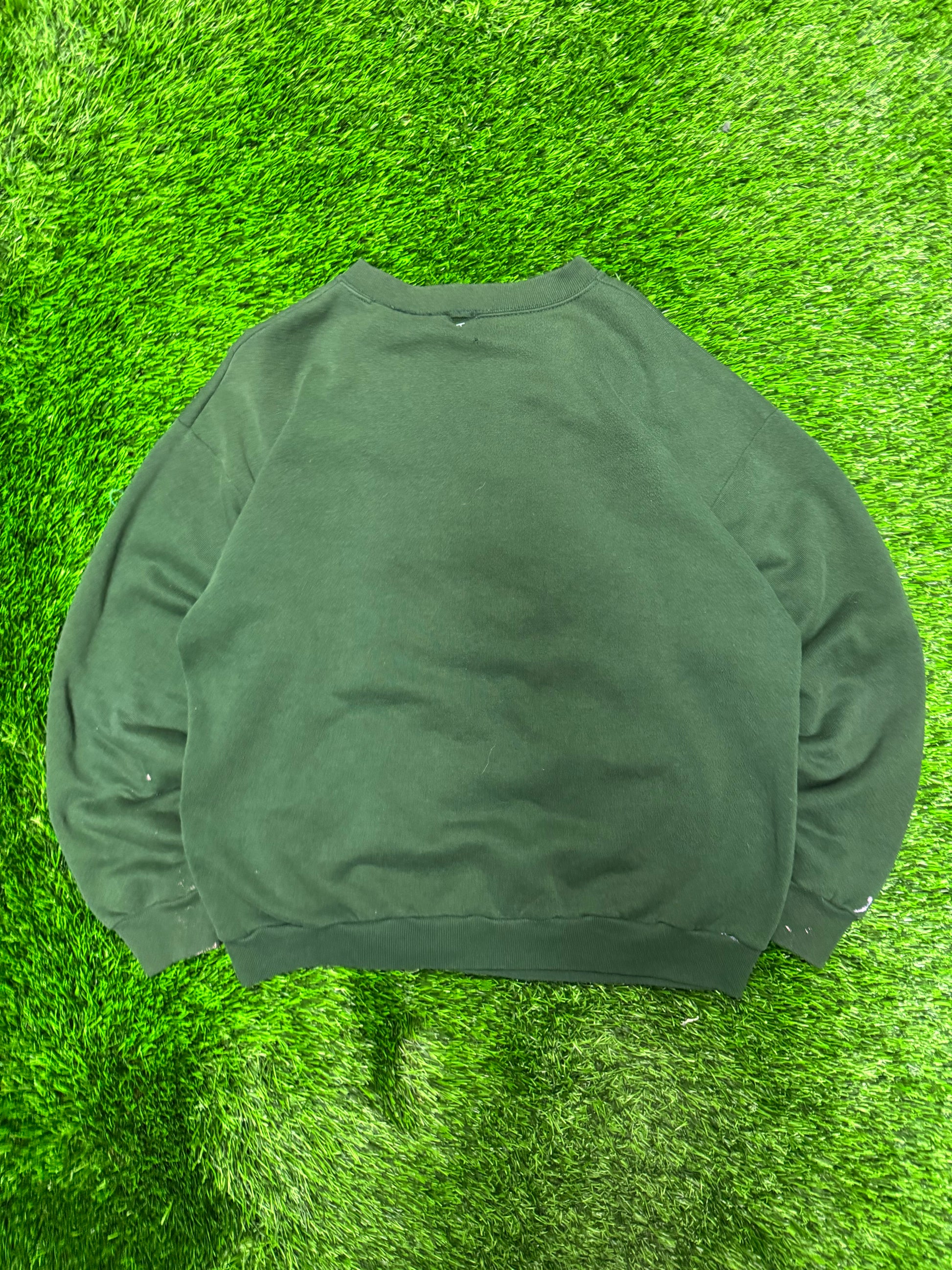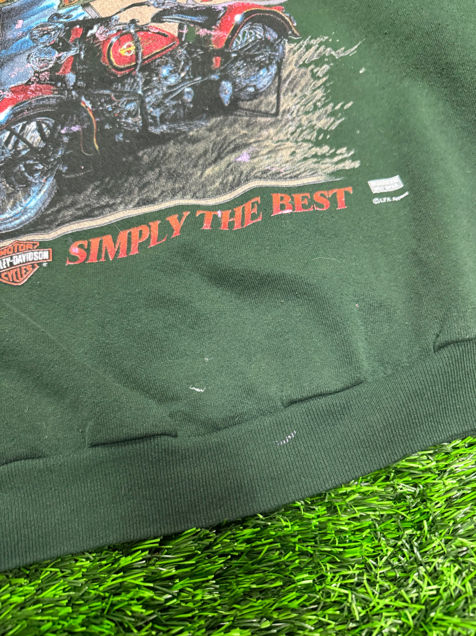 90s Harley Davidson Twin Faded Green Paint Splatter Crewneck (L)