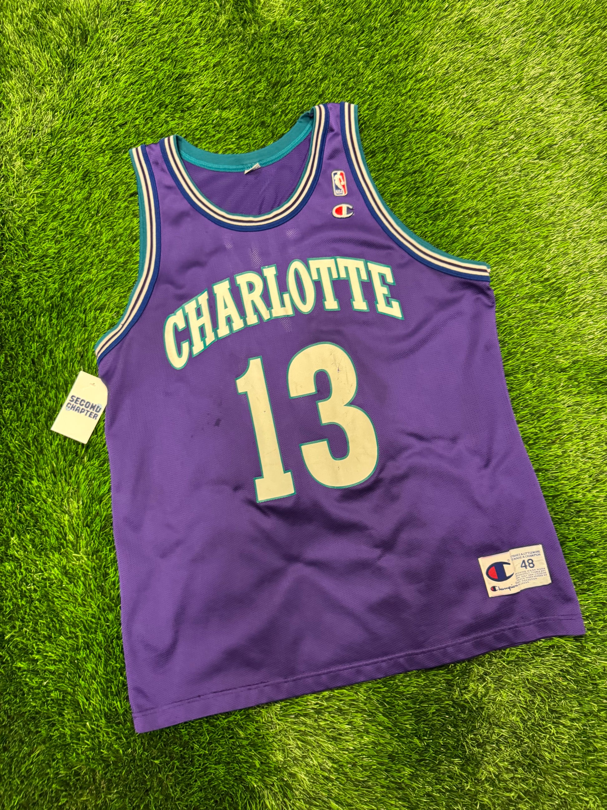 90s Charlotte Hornets Kendall Gill #13 Vintage Champion Purple Jersey (L)