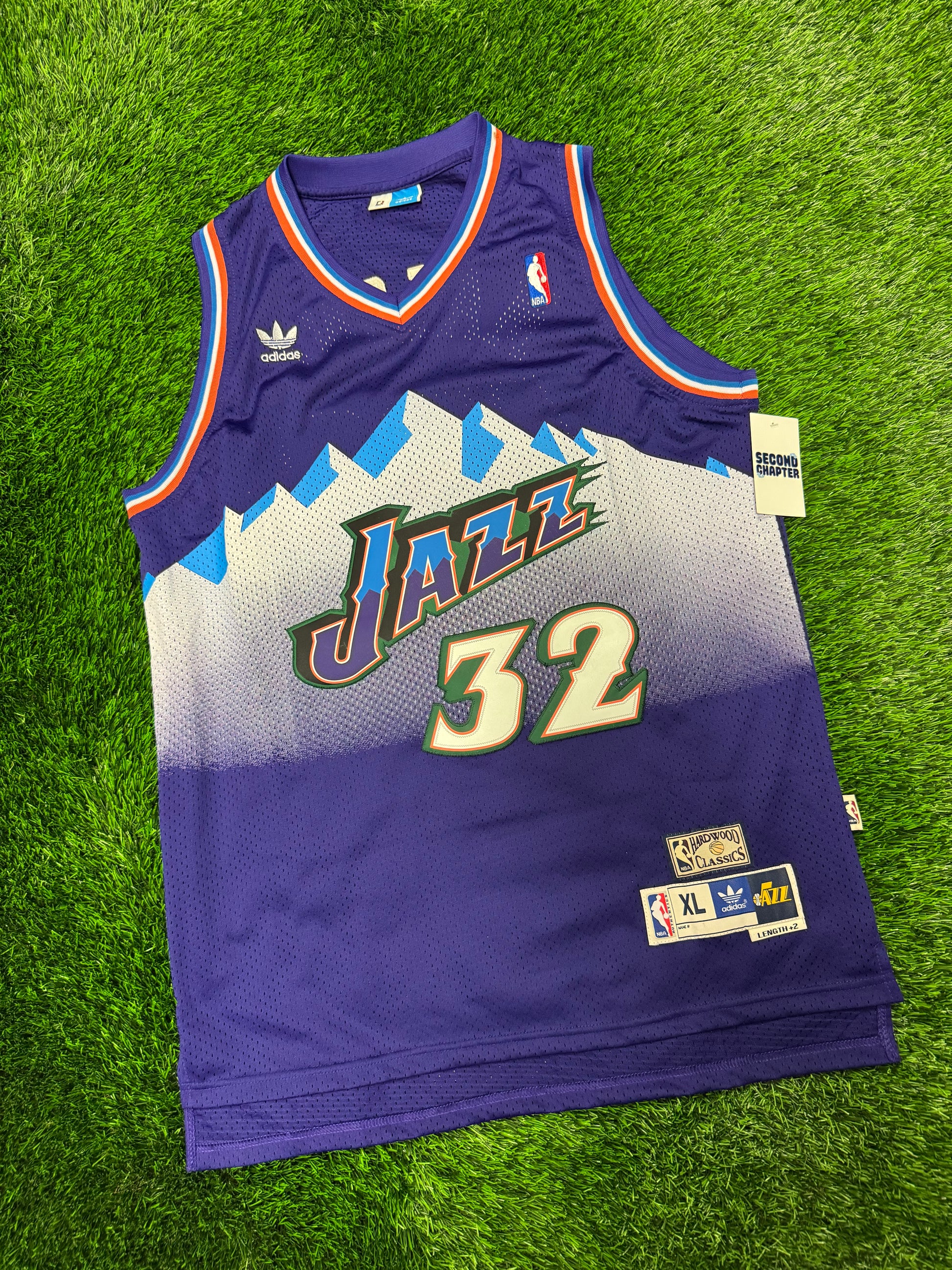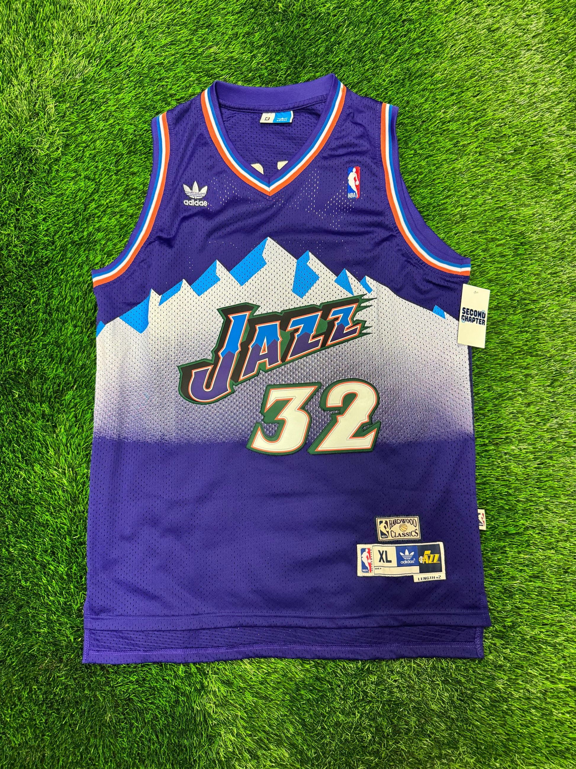 Utah Jazz Karl Malone #32 Adidas Hardwood Classics Purple Mountain NBA Jersey (XL)