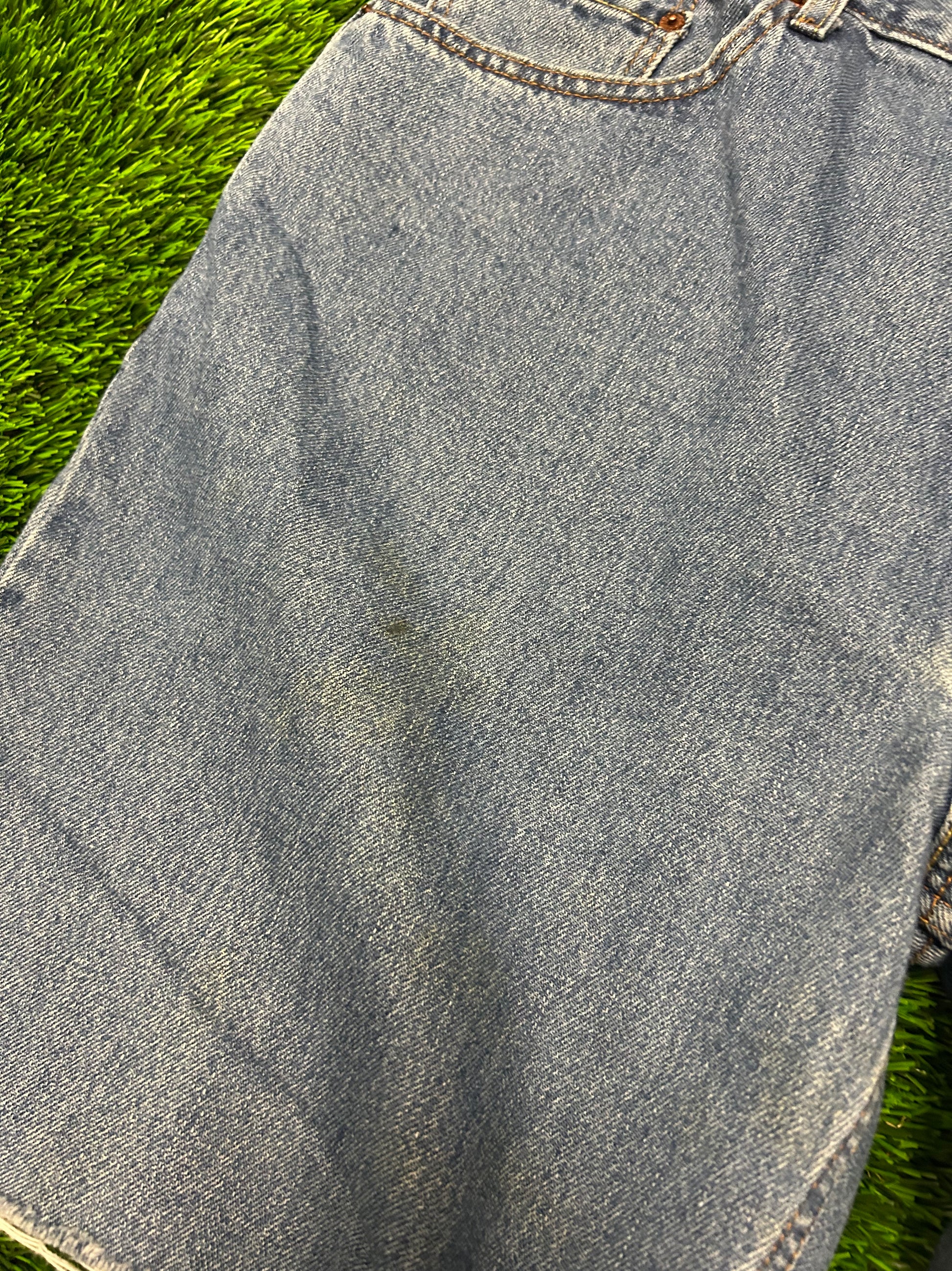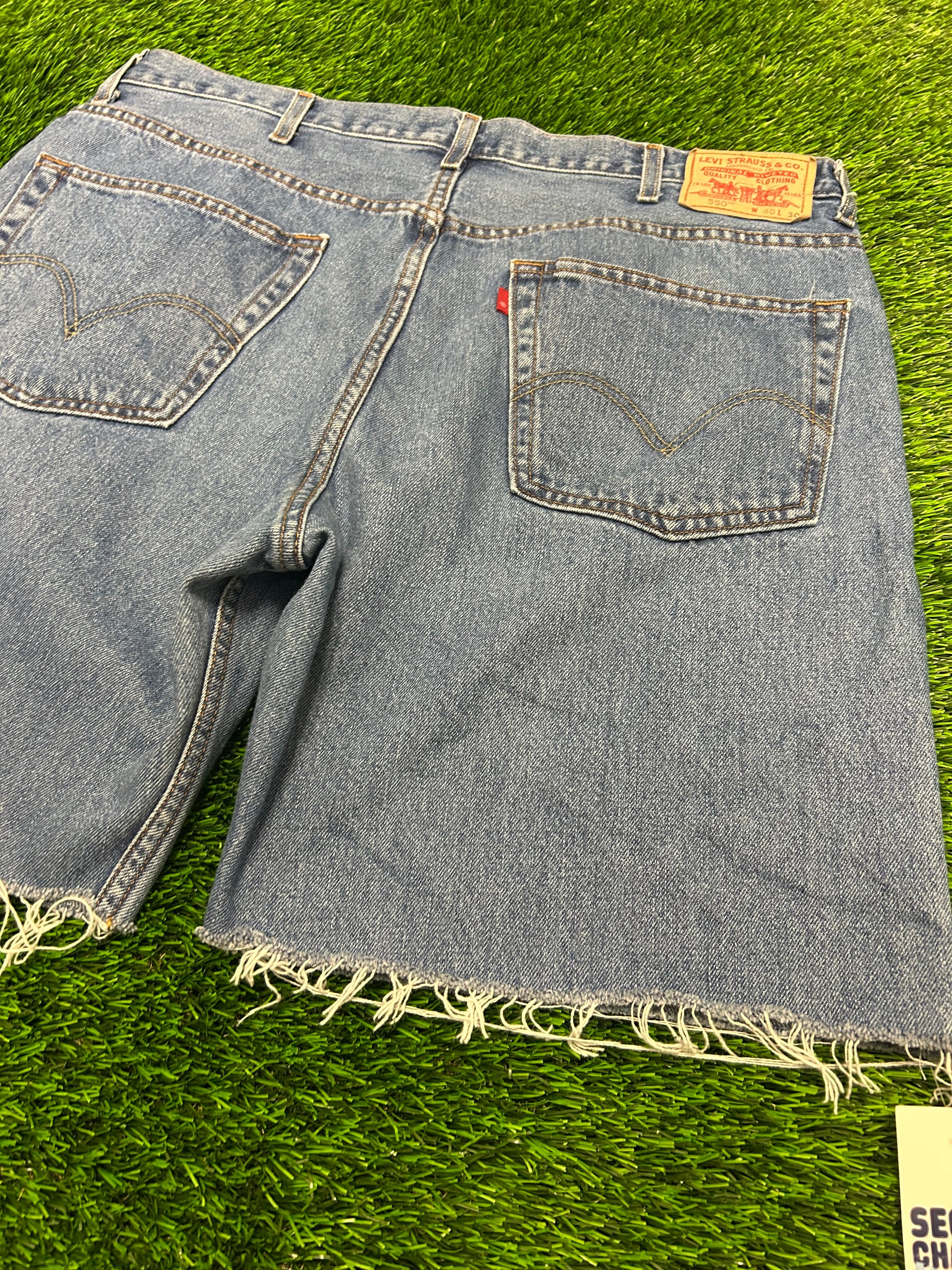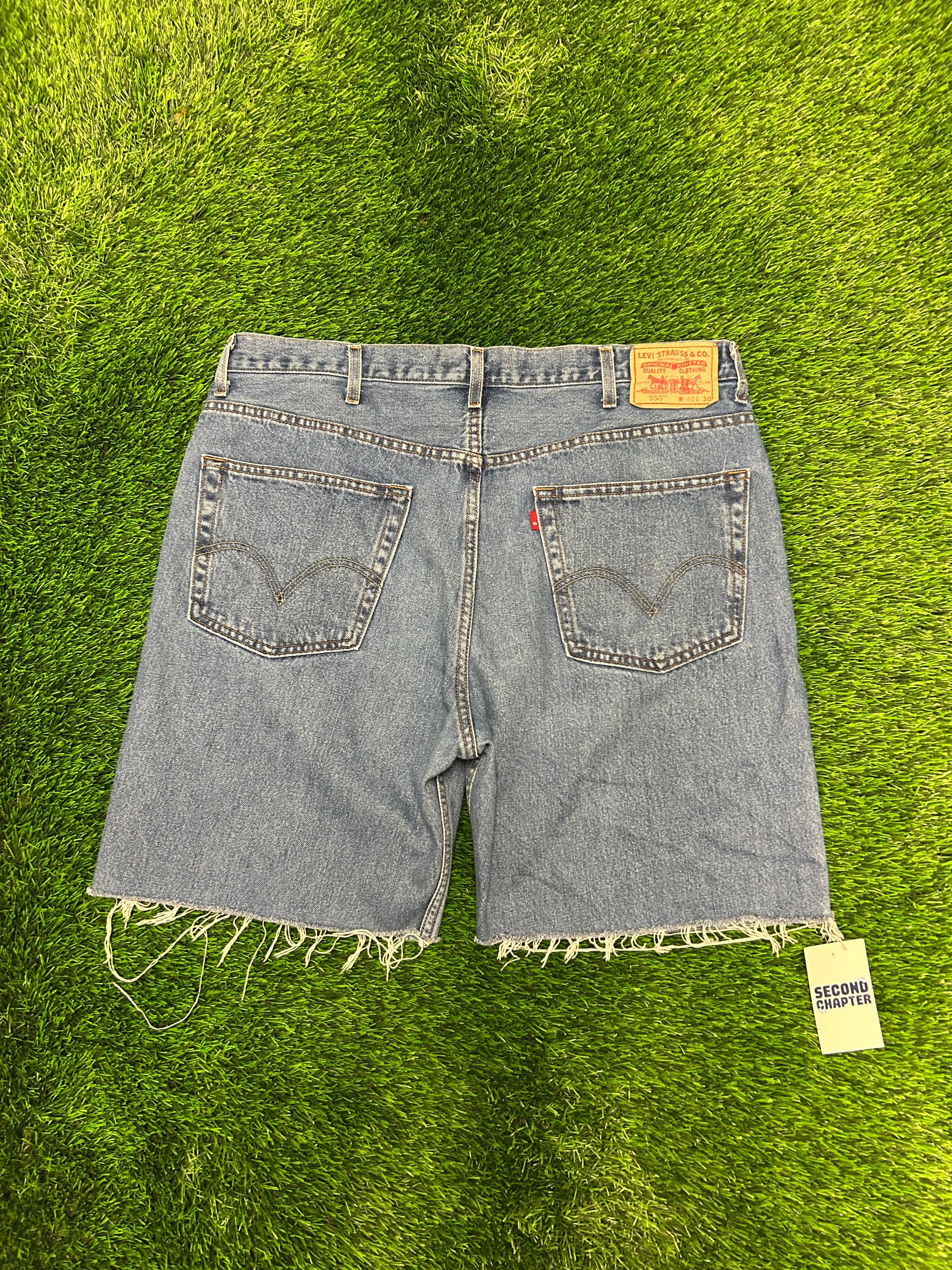 00s Vintage Levi's 550 Dark Wash Frayed Cut Off Jean Shorts (40)