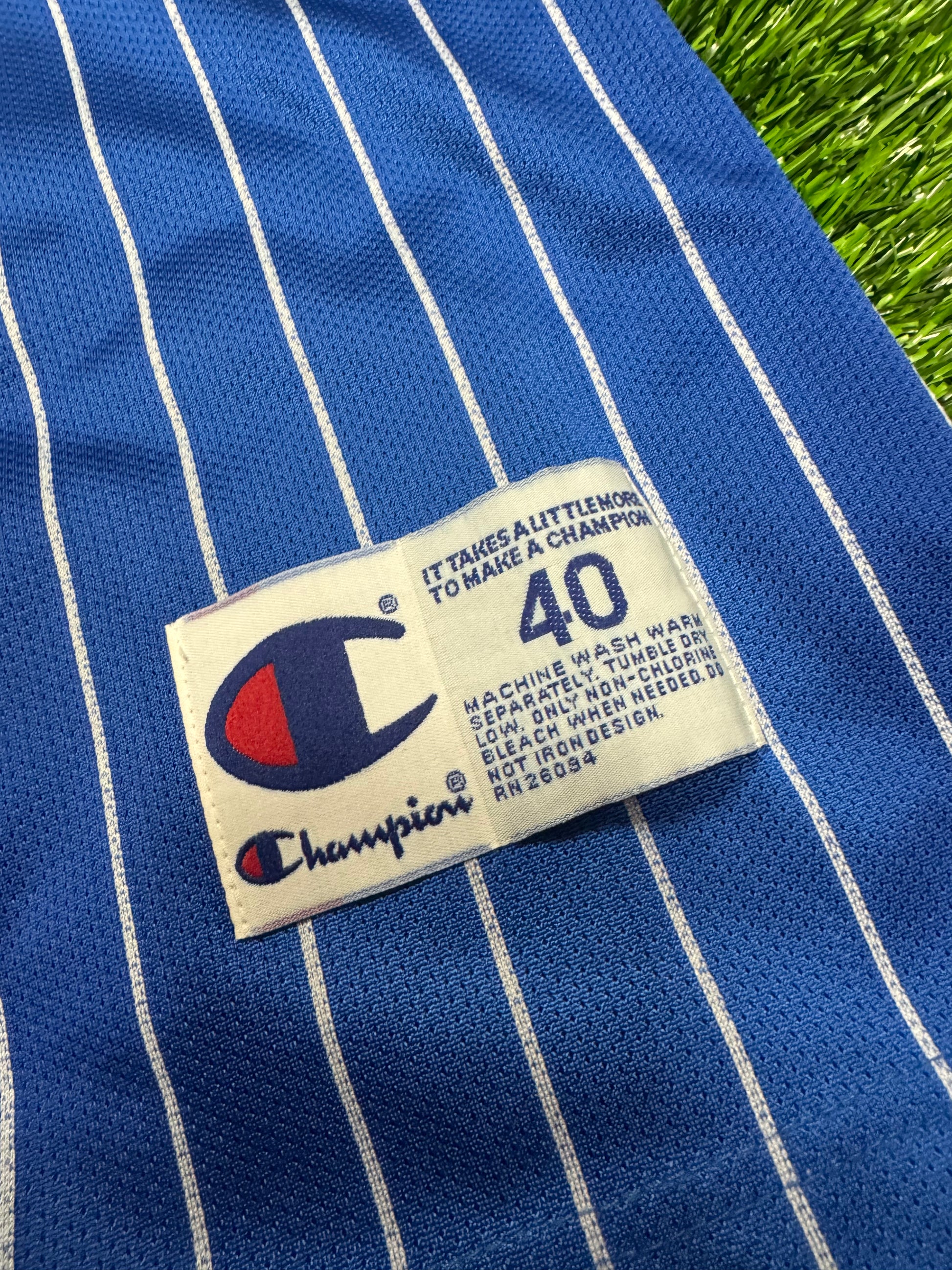90s Orlando Magic Penny Hardaway #1 Champion Vintage Blue Pinstripe NBA Jersey (S)